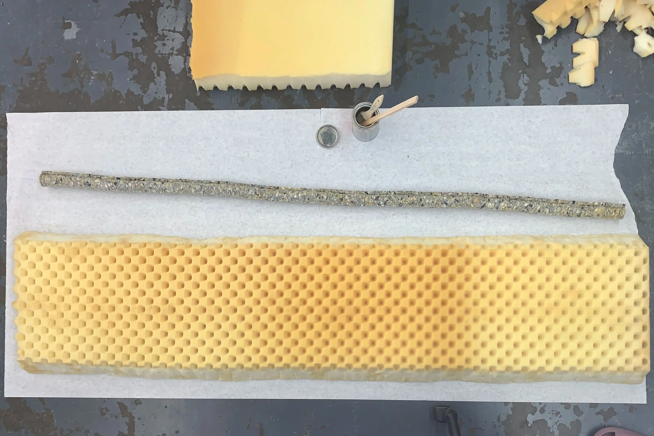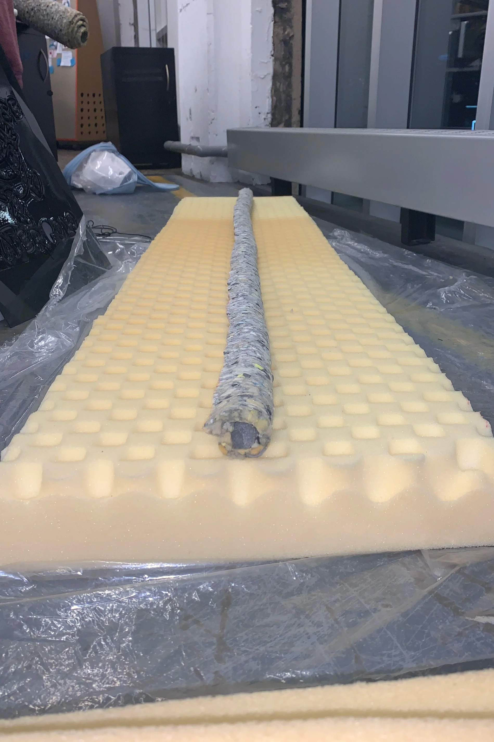Pillow Guts • wire (recycled) • backing rod • carpet pad (recycled) • memory foam sheet (recycled) • contact cement