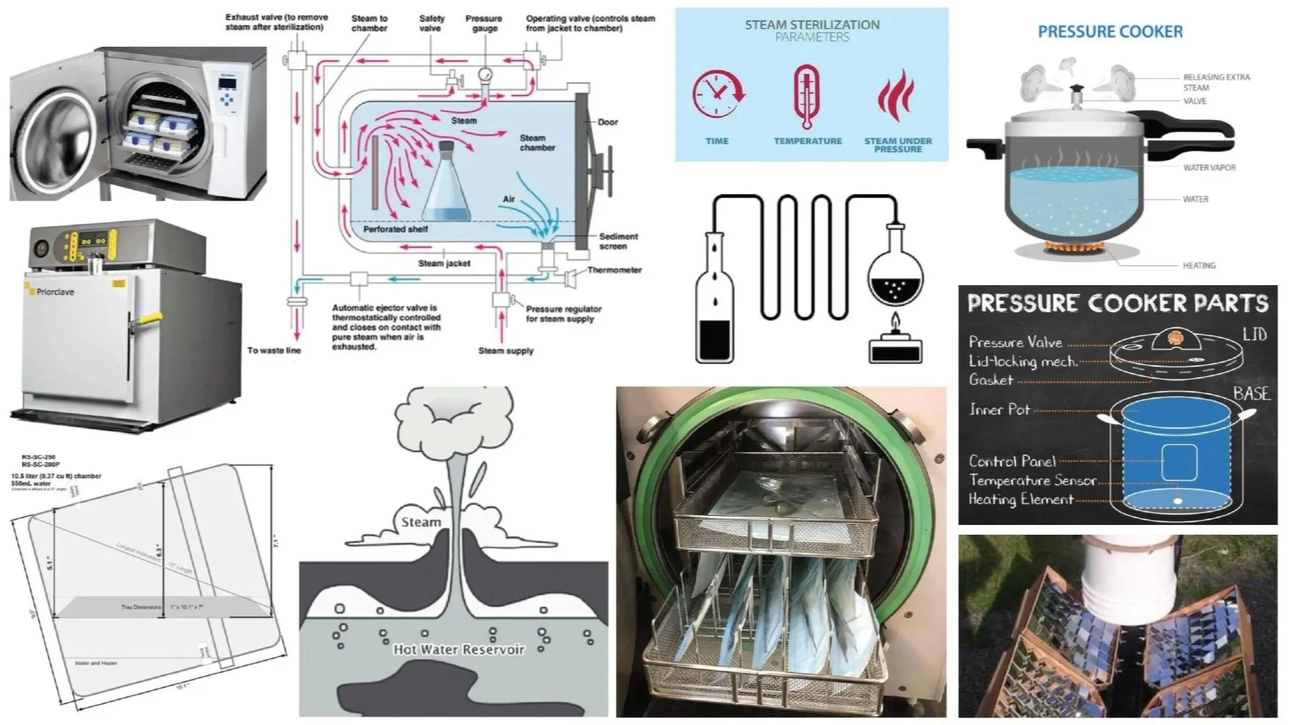 Comparable to a pressure cooker or a high-intensity dishwasher, an autoclave generates enough pressure and heat to create steam, which is used to sanitize contaminated surgical instruments and other biohazardous tools for reuse in a medical setting.