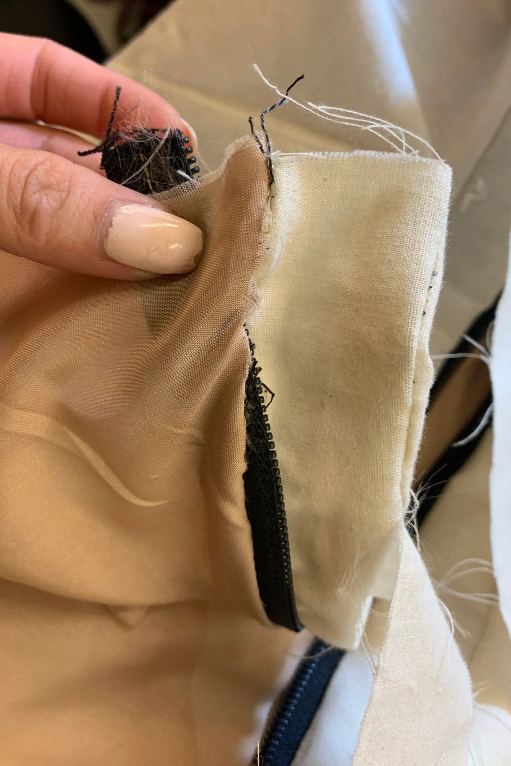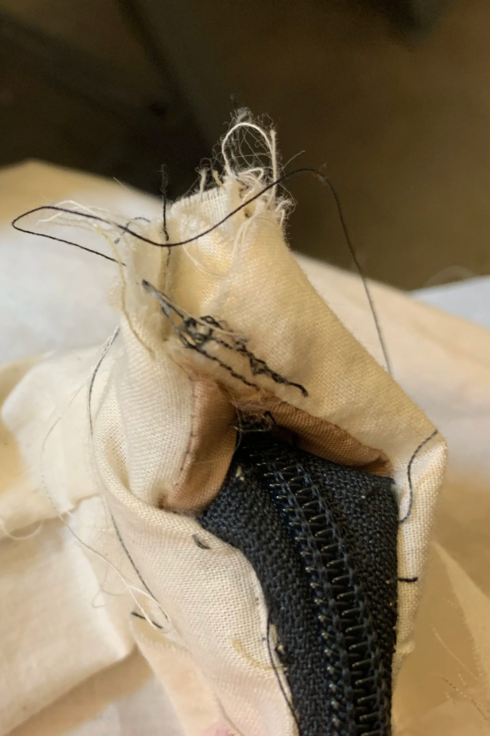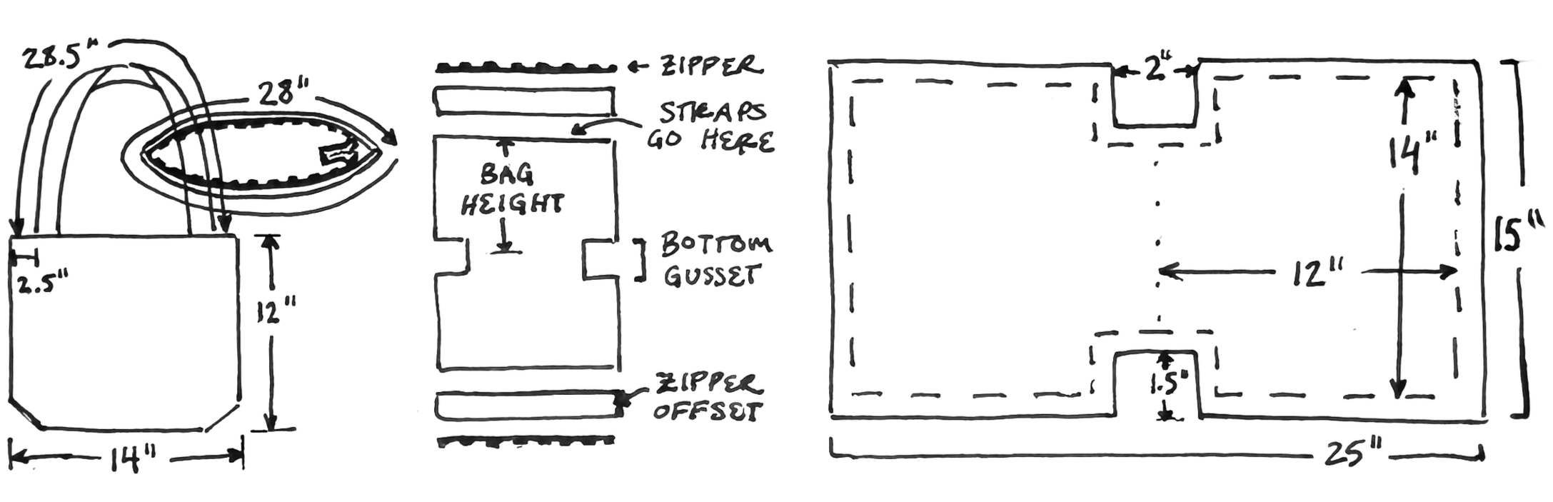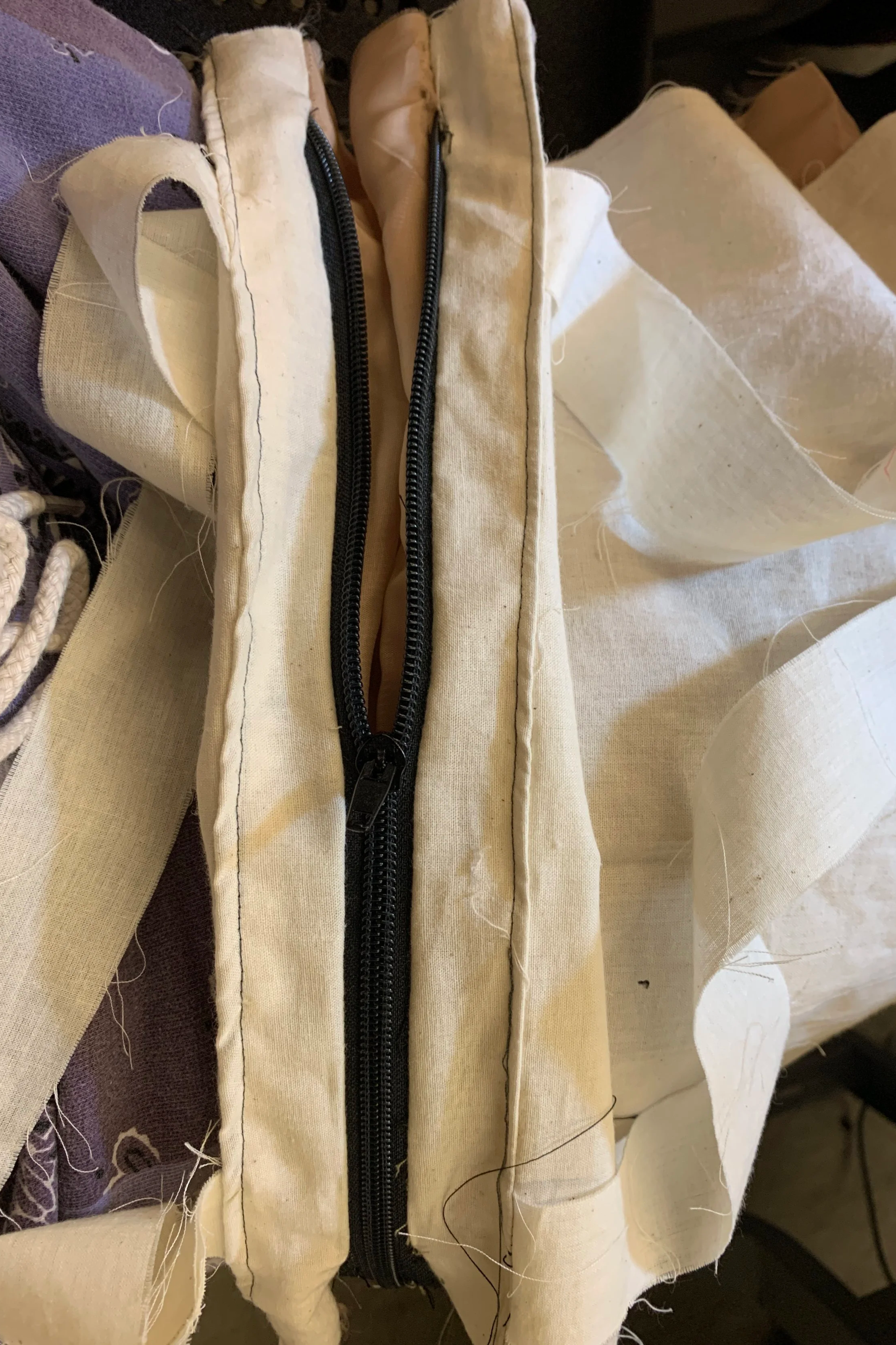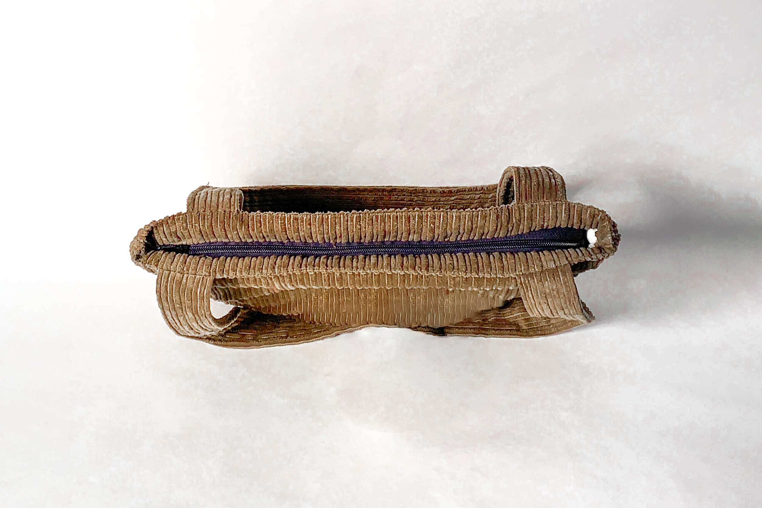 + to workshop zipper into desired style (disappear into one end of the bag and trail away from the other end, allowing for a wider expanding width)